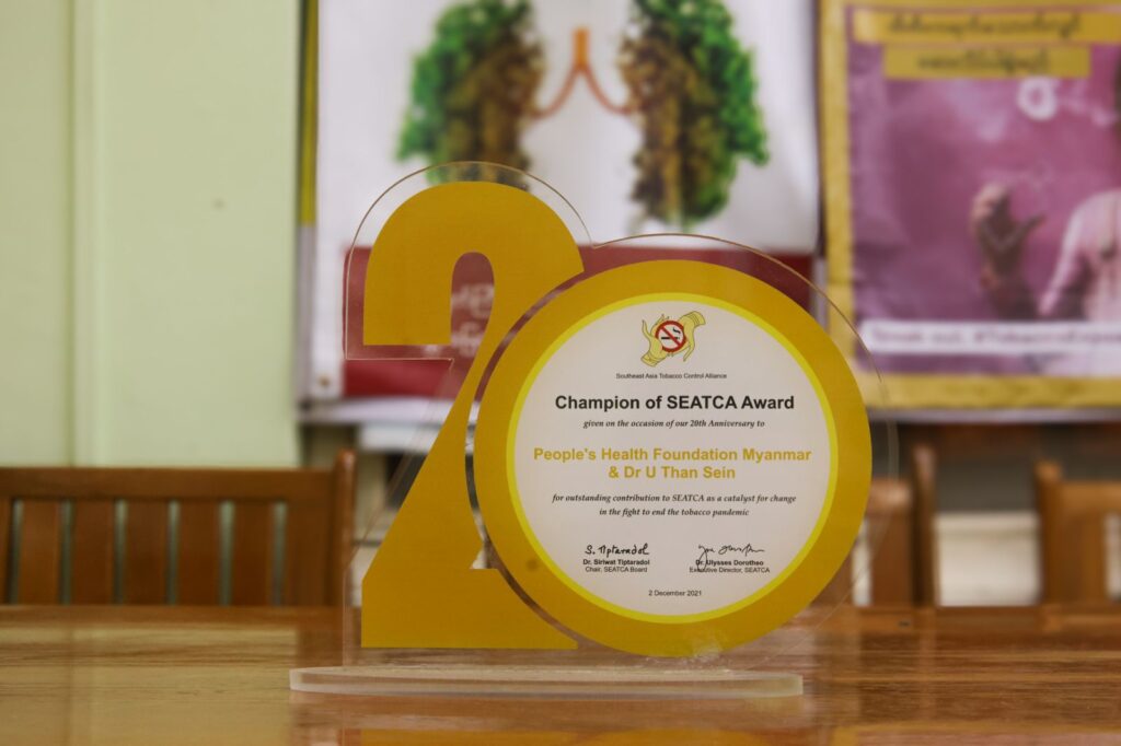 Southeast Asia Tobacco Control Alliance (SEATCA) has given, on the occasion of the 20th Anniversary of SEATCA, the “Champion of SEATCA Award”, to the People’s Health Foundation (PHF), Myanmar and Dr U Than Sein (President of PHF) for outstanding contribution to SEATCA, as a catalyst for change in the fight to end the Tobacco Pandemic, on 2 December 2021.