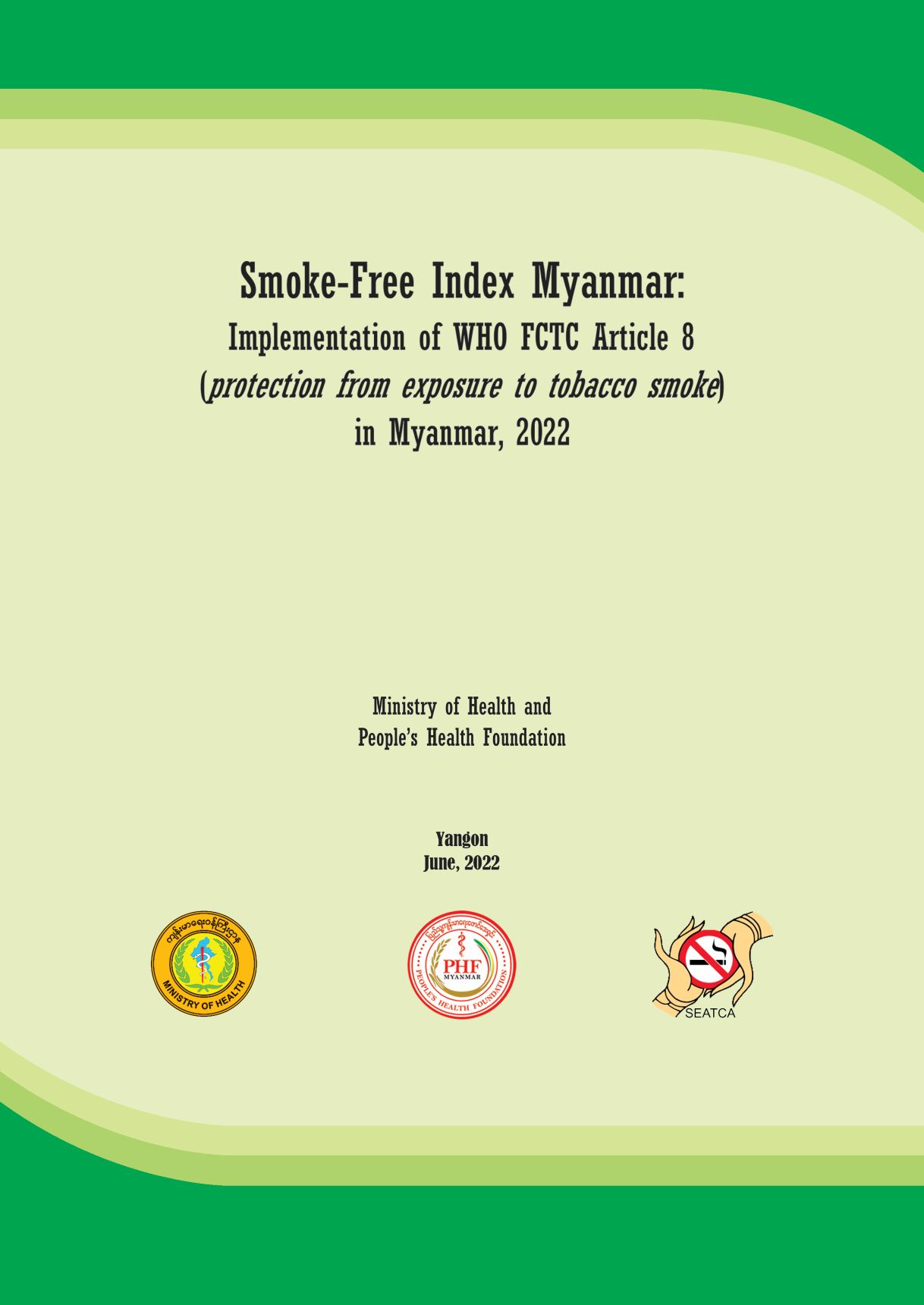 Ministry of Health and PHF have jointly published the Smoke-free Index Myanmar, 2022, book. The book contains the agreed statements of principles and definitions of the relevant terms as per the WHO FCTC Article 8 and its Guidelines, and, to guide the implementers and the implementation partners; and also to identify the measures needed to achieve effective protection from exposure to the second-hand smoke.